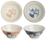 Zestaw 4 japońskich misek różowa i niebieska, Neko Nishiki 14,5 cm x 6,5 cm - Emro
