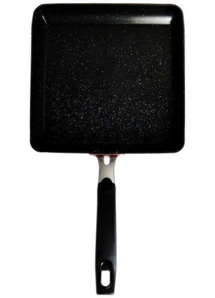 Koreańska patelnia w kształcie kwadratu o wymiarach 25 x 25cm, służąca do przygotowywania tamagoyaki - japońskich rolowanych omletów jajecznych. Wyposażona jest w wygodną, mocną rączkę o ergonomicznym kształcie, która doskonale dopasowuje się do dłoni oraz powłokę zapobiegającą przywieraniu smażonych potraw do dna, dzięki czemu nauka zawijania tamago będzie o wiele prostsza i przyjemniejsza... Prawie bezstresowa. ;) Patelnia utrzymana jest w stylowym, czerwono-czarnym schemacie kolorystycznym z szarym, matowym nadrukiem.
