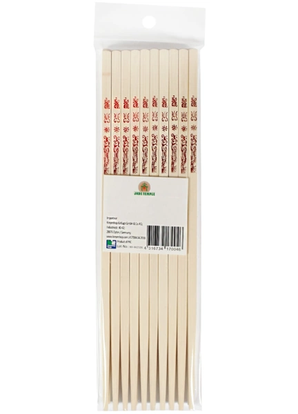 • Komplet 10 par bambusowych pałeczek Jade Temple o kwadratowym przekroju i delikatnym czerwonym zdobieniu. Doskonałe do serwowania sushi, ramenu i innych dań azjatyckich, a także pomocne przy przygotowywaniu tempury i gorących potraw w kuchni.