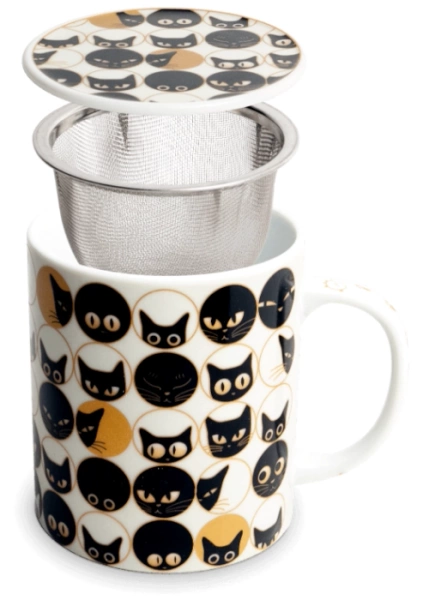 Kubek z filtrem do herbaty i pokrywką Kocie Oczka 300ml - Jewel Japan