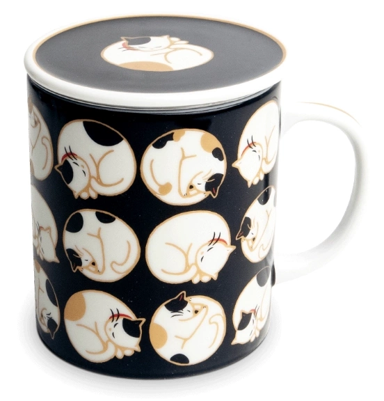 Kubek z filtrem do herbaty i pokrywką Śpiące Kotki 300ml - Jewel Japan
