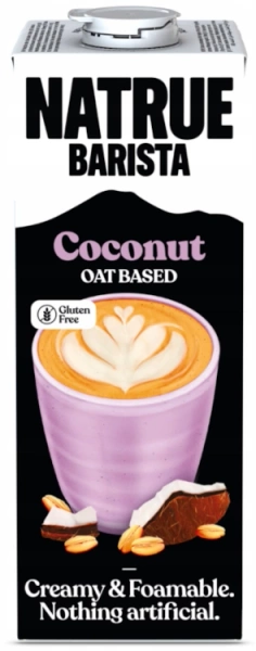 Natrue Barista Oat Coconut Drink to w 100% roślinna alternatywa mleka, która łączy subtelną słodycz owsa z tropikalną nutą kokosa. Delikatny w smaku, kremowy i bezglutenowy, został opracowany z myślą o domowych i profesjonalnych baristach. Wytwarzany z europejskiego owsa i krystalicznie czystej wody z parku narodowego Montseny, idealnie się spienia, dlatego świetnie sprawdza się w kawach z mlekiem, napojach typu chai latte, herbacie matcha, kakao, a nawet w tajskich mrożonych kawach i deserach kokosowych. Dzięki dodatkowi białka z bobu, napój ma pełniejszą konsystencję, bez potrzeby stosowania zagęstników.